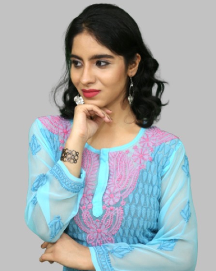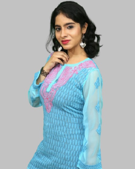 3. Design: Georgette short tops can come in a variety of designs and embellishments, including solid colors, prints, embroidery, lace inserts, or beading, depending on the desired look and occasion.