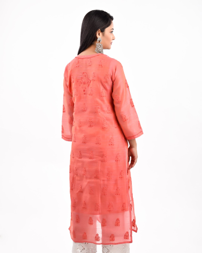 - With its versatility, the Kurti Chanderi can be styled in numerous ways to suit individual preferences and occasions. It can be paired with matching or contrasting bottoms such as leggings, palazzos, or straight pants, allowing for endless possibilities for customization and personal expression.
