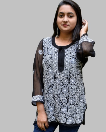 - Design: Georgette short tops can come in a variety of designs and embellishments, including solid colors, prints, embroidery, lace inserts, or beading, depending on the desired look and occasion.